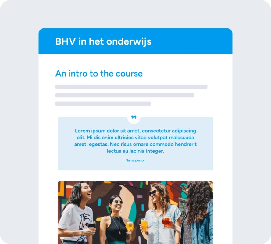Van veiligheid en inclusie tot verplichte certificeringen, scholen moeten voldoen aan strenge wet- en regelgeving. Met trainingen zoals ‘Veiligheid en Arbo’, ‘BHV in het onderwijs’ en ‘De meldcode kindermishandeling’ blijven docenten en ondersteunend personeel altijd up-to-date.